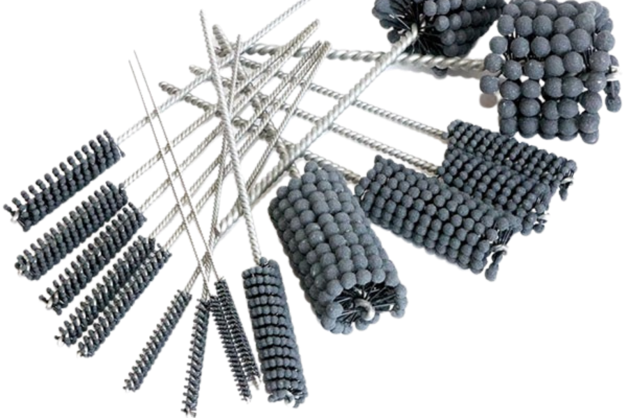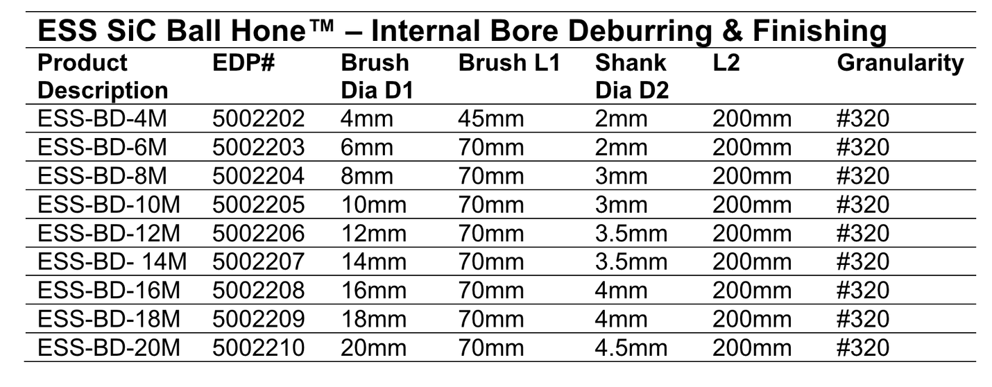 ESS SiC Ball Hone™ tools are flexible, spherical-tip abrasive brushes designed to finish and deburr the inside of bores, tubes, ports, and cross-holes. Silicon-carbide–impregnated filaments conform to minor bore irregularities to produce a controlled plateau finish without altering size.